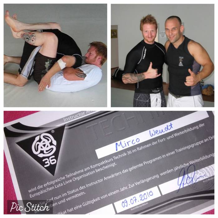 I started training „No Gi“ grappling ("Andyconda"Luta Livre - Cologne/Germany) in 2010. I transitioned to Brazilian Jiu Jitsu , to learn in the Gi, too, in summer 2013, which I trained and learned consistently since then.