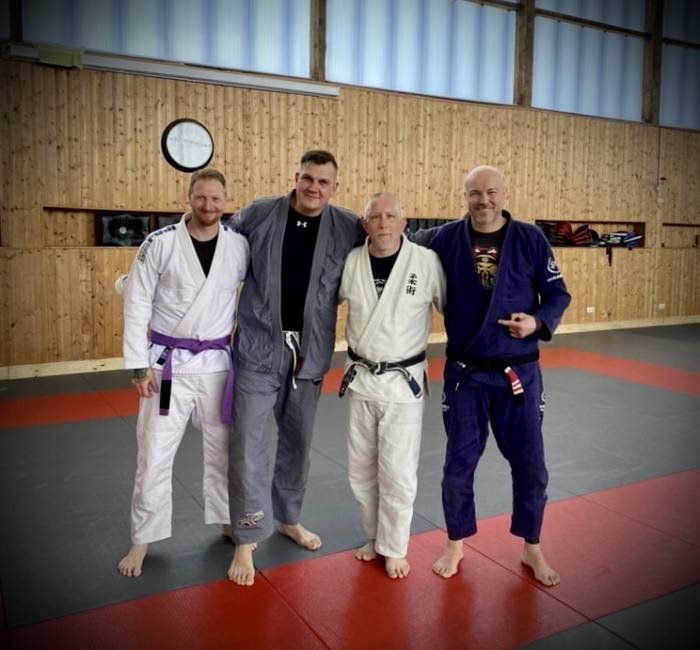 2017, Visiting my friend, BJJ Blackbelt Mark Picton and his Coach, Professor Paul Cole, at 5 rings grappling Mansfield/UK, with 2 of my training partners