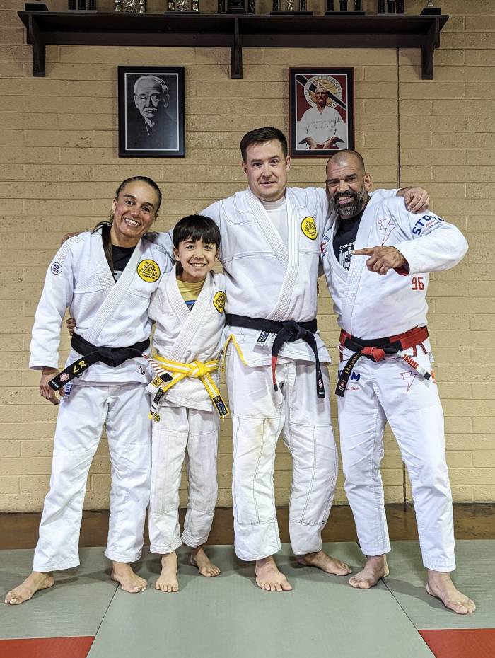 Fueled by the early UFC tapes I borrowed while working at Blockbuster, I started training at Brazilian Jiu-Jitsu Boulder just after purple belt Amal Easton returned from Brazil. At the time, he and/or Mark Johnson were renting mat time from Tim Wolchek at Karate America (2560 28th St., Boulder). I was one of Amal’s first students, built his first website https://web.archive.org/w[...]ctures.htm and helped coach CU Rec Center classes that fed students to his off-campus academy. Amal soon opened his own place next to CompUSA (1750 30th St., Boulder). During summers, I trained with my brother at Fabio Santos in San Diego, CA with Jeff Higgs, Dean Lister, and Jerry Costa and also submission wrestling at SLO Kickboxing with UFC alums Chuck Lidell, Scott Adams, Gan McGee and Jason Von Flue in San Luis Obispo, CA. A few years later, a white belt who had jumped around different gyms, I took a scouting trip to Phoenix to figure out where I wanted to settle down on my jiu jitsu journey. Driving south on I-17, I noticed a “Megaton” academy sticker on blue belt Mike Graeber’s Trans Am. I looked up who Megaton was, and that chance sighting ended up shaping my move - I started focusing my housing search near his academy so I could train there. Small, chance moments can have a big impact on later life events! Mike is now the lead instructor at Gracie Humaitá Kansas City.