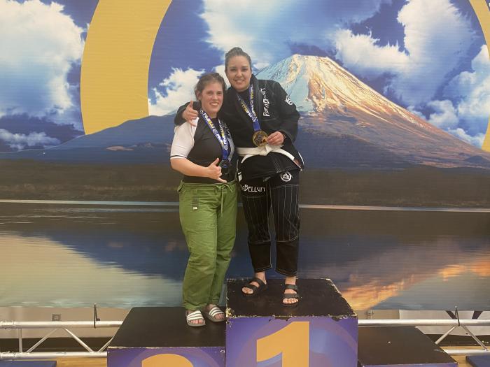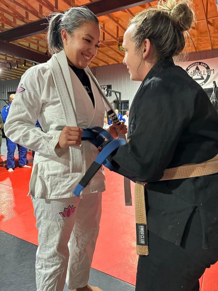 Coach Tori Brown tying on that blue belt