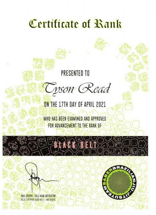 Black belt certificate