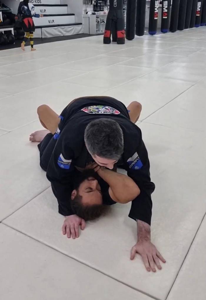 Filming a short instructional for the gym on mount attacks