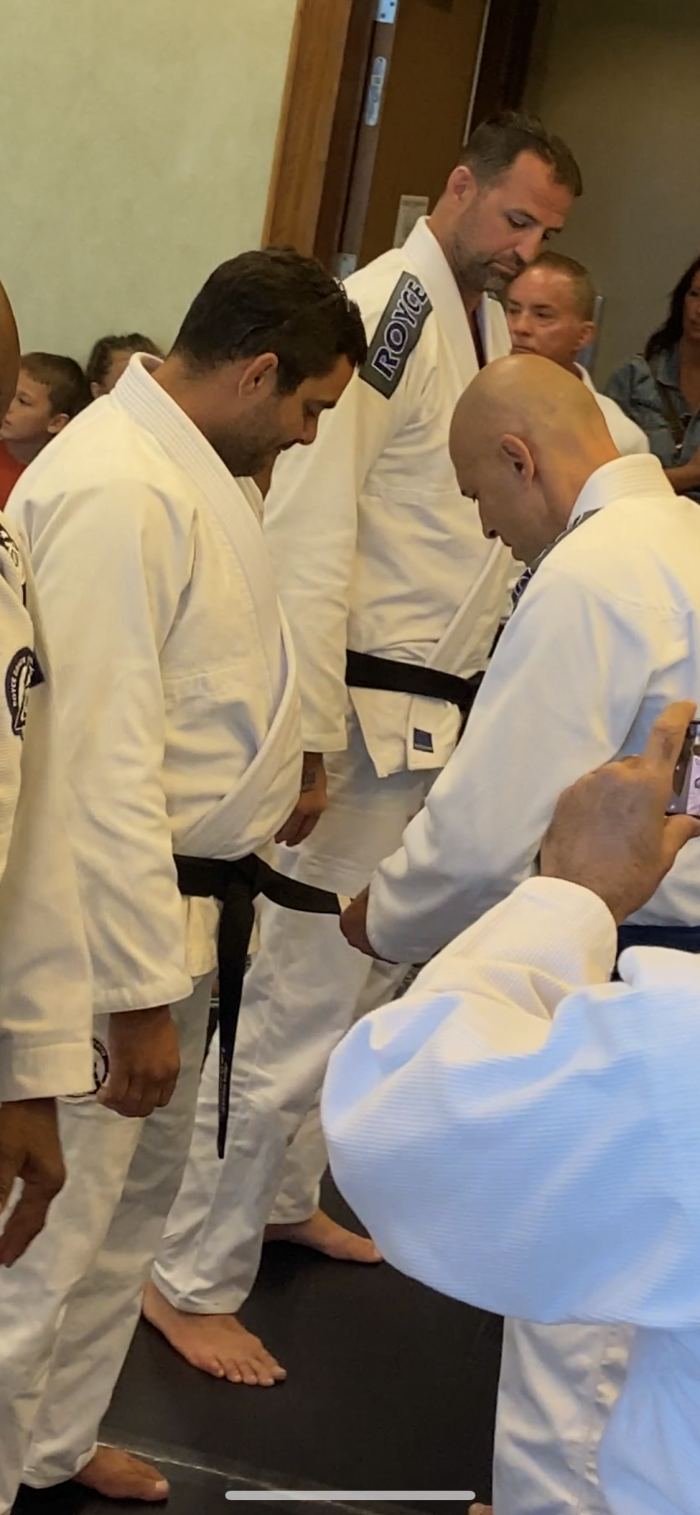 I found some pictures of Royce giving me black belt and Jeremy getting his second degree. They are at different dates, FYI.