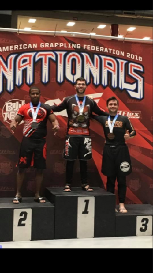 I was first exposed to BJJ in 2010 while attending MMA classes led by Houston Stout at the local YMCA. I quit training as I left for college. After completing my undergraduate degree, I decided it was time to train again. I learned about Takedown Jiu-Jitsu from a former rugby teammate, Bradley Grimm. I officially put the GI on for the first time in November of 2017 at Takedown Jiujitsu. The ironic part of this is that my first BJJ tournament was in March of 2017 where I earned second place in AGF’s ultra heavy division.