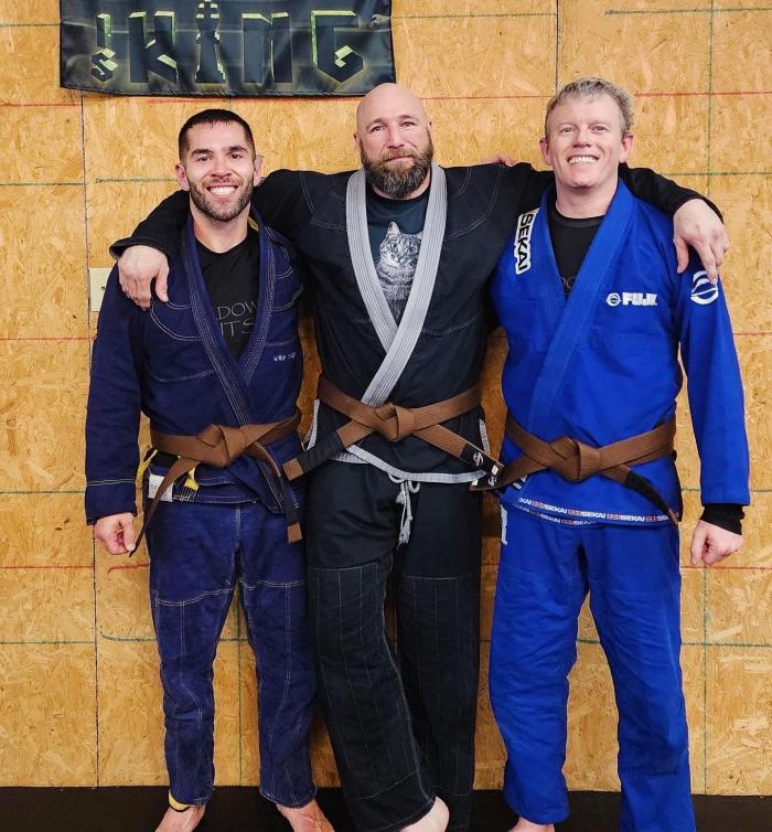 My professor Matt Tonubbee and his professor Christian Derr presented me my brown belt.