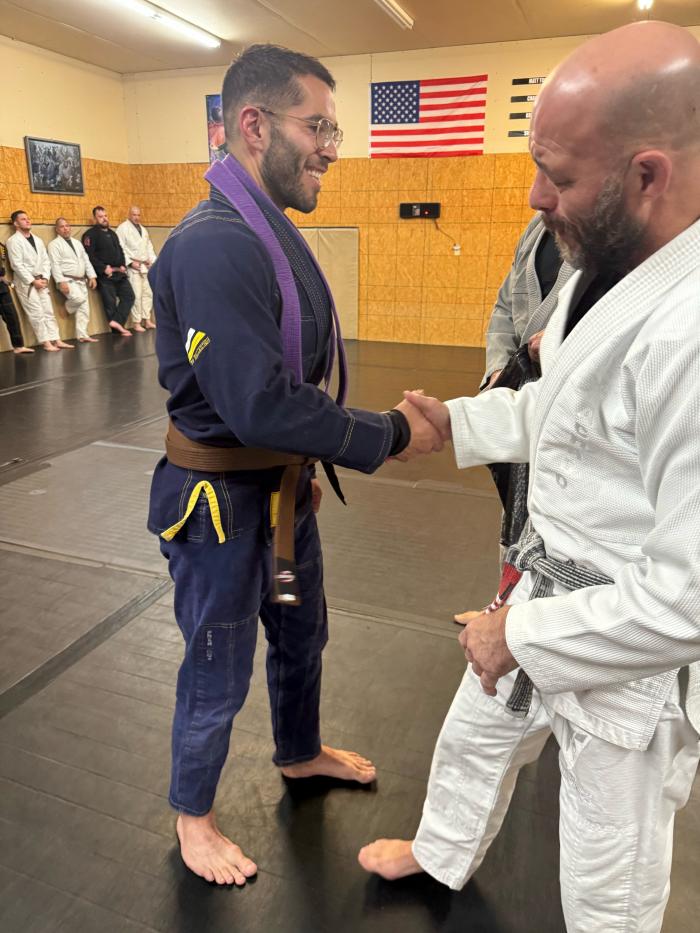 NOV 13 2025: I was presented my blackbelt by Professor Matt Tonubbee of Takedown Jiu-Jitsu Club. Professor Christian Derr of Clinch Martial Arts (Our HQ Professor/gym) was also in attendance.