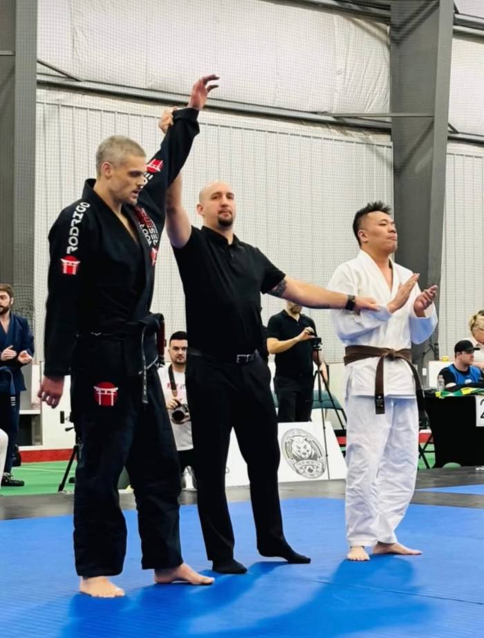 Gold medal at open weight division, submission by triangle choke.