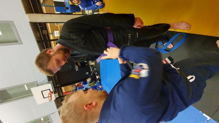 "Belt awarded by me, good physical talents, curious mind and always growing set of skills! Grown into excellent coach. Positively VERY annoying to roll with! :) "
