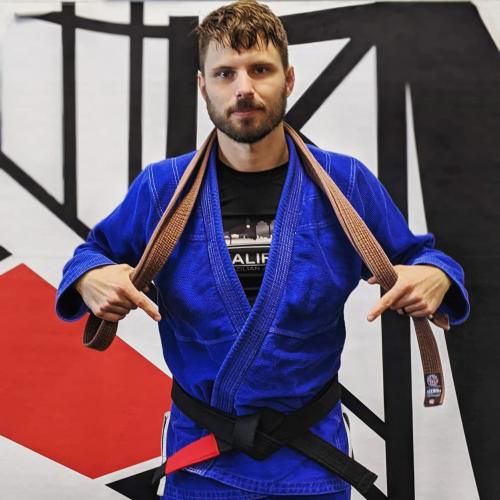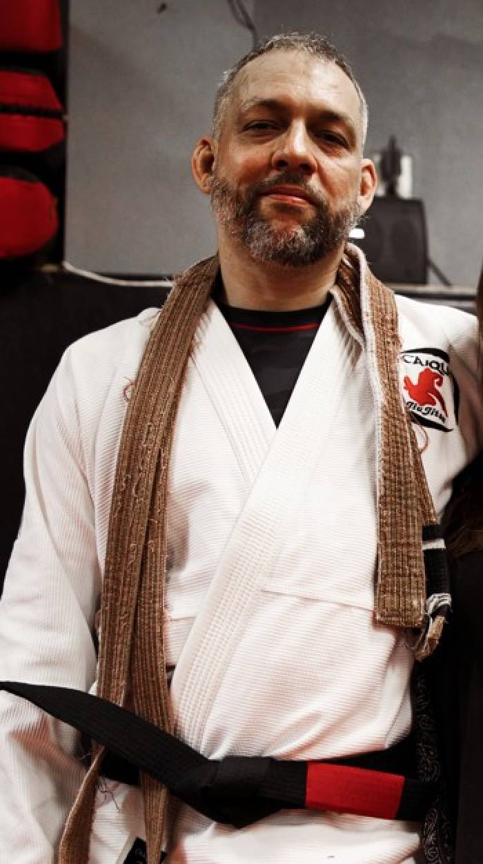 6th degree Black Belt and member of the dirty dozen (the first 12 non-Brazilian black belts). Chris was the first American to submit a Brazilian in competition, the first American to compete as a black belt at the Mundials in Brazil and he continues to travel the world spreading his Jiu Jitsu philosophy of think street, train sport and practice art. He is also known for his golden rules of grappling, coining the term combat base as the base with one knee up and one knee down, and saying, "It is not about who is good, but who is left. It's time on the mat. You will be somewhere in ten years, you might as well be a black belt too. Just don't quit."